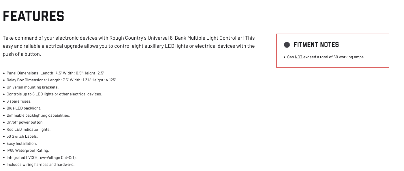 Schaltet 8 verschieden Scheinwerfer oder elektrische Geräte von einem Bedienpanel