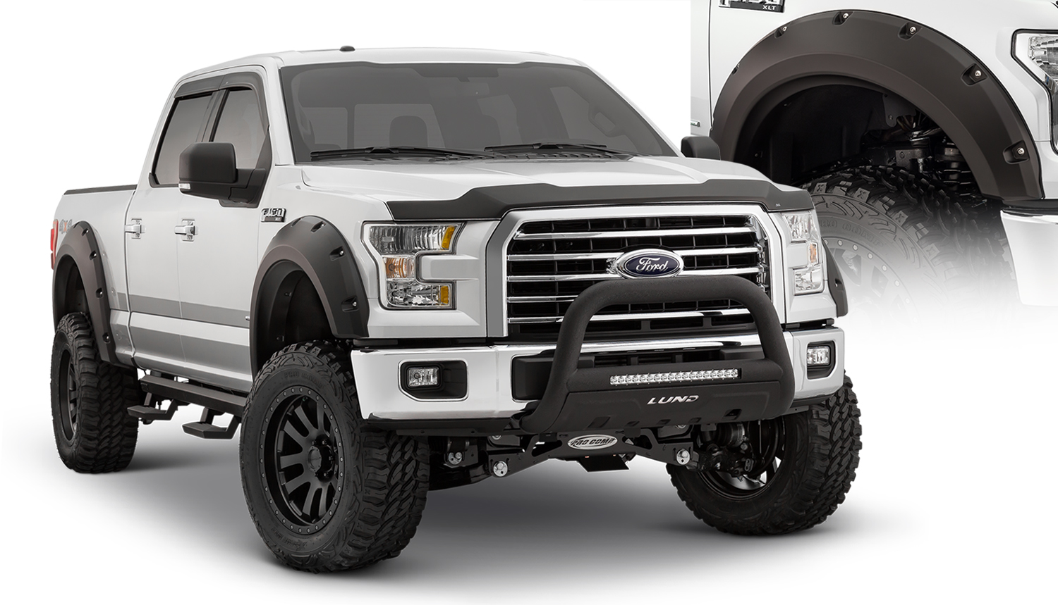 Unsere Premium-Kotflügelverbreiterungen Bushwacker im ultimativen Offroad-Style mit Nieten.